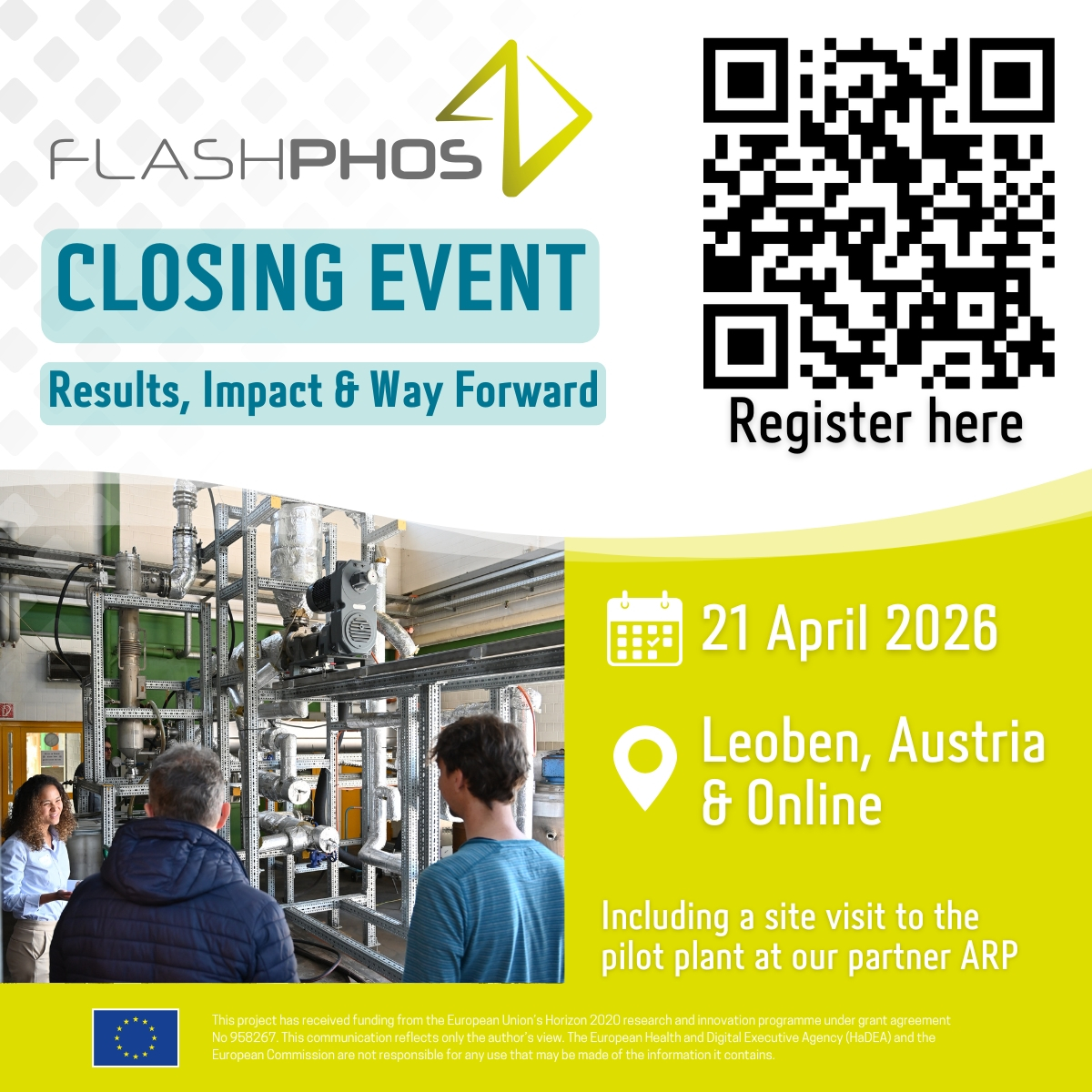 Leoben, Austria – The EU-funded project FlashPhos, which has been advancing phosphorus recovery for the past five years, is holding its Final Conference on Tuesday, 21 April 2026, from 09:00 to 17:00 CET in Leoben, Austria. The event is organized by the Steinbeis Europa Zentrum, University of Stuttgart, Italmatch Chemicals, and Aufbereitung Recycling und Prüftechnik GmbH (ARP), where participants will have the opportunity to visit the FlashPhos pilot plant.